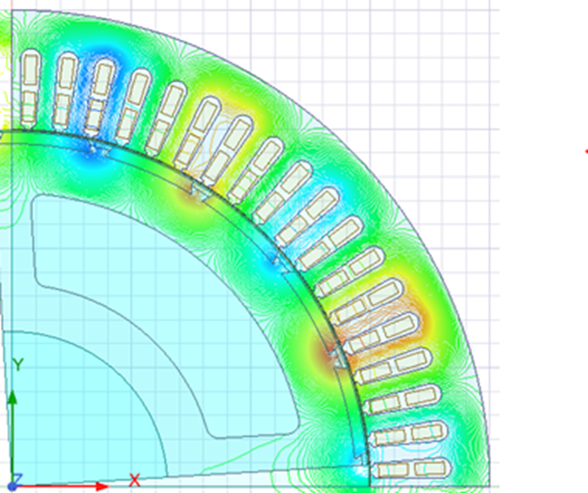 பசுமை மற்றும் குறைந்த கார்பன் பயணத்திற்கான உலகளாவிய வாதத்தின் பின்னணியில், இரயில் போக்குவரத்து கட்டுமானமானது ஆற்றல் பாதுகாப்பிற்கான அதிக தேவைகளை முன்வைத்துள்ளது. எனவே, மற்ற லிஃப்ட்களுடன் ஒப்பிடுகையில், சுரங்கப்பாதை லிஃப்ட் அதிக அளவிலான பயணிகள் ஓட்டம் கொண்ட நகர்ப்புற சூழ்நிலைகளை சந்திக்க இழுவை இயந்திரங்கள் தேவைப்படுகின்றன. தோராயமாக 1 மீ/வி வேகம் கொண்ட லிஃப்ட்களுக்கு, அவற்றின் செயல்திறன் 90% வரை அடையலாம். மேலும், லிஃப்ட் நிறுவலின் தேவைகளின் கீழ், இழுவை இயந்திரத்தின் எடை மற்றும் அளவு கட்டுப்படுத்தப்பட வேண்டும். எனவே, இழுவை இயந்திர வடிவமைப்பு பொறியாளர்கள் மின்காந்த வடிவமைப்பில் சிறந்த அனுபவம் பெற்றிருக்க வேண்டும், மேம்பட்ட மின்காந்த புல பகுப்பாய்வு மென்பொருள் (படம் 5) மூலம் மின்காந்த வடிவமைப்பை மேம்படுத்துதல் மற்றும் தேவைகளைப் பூர்த்தி செய்ய பொருத்தமான மின்காந்தப் பொருட்களைத் தேர்ந்தெடுக்க வேண்டும்.
