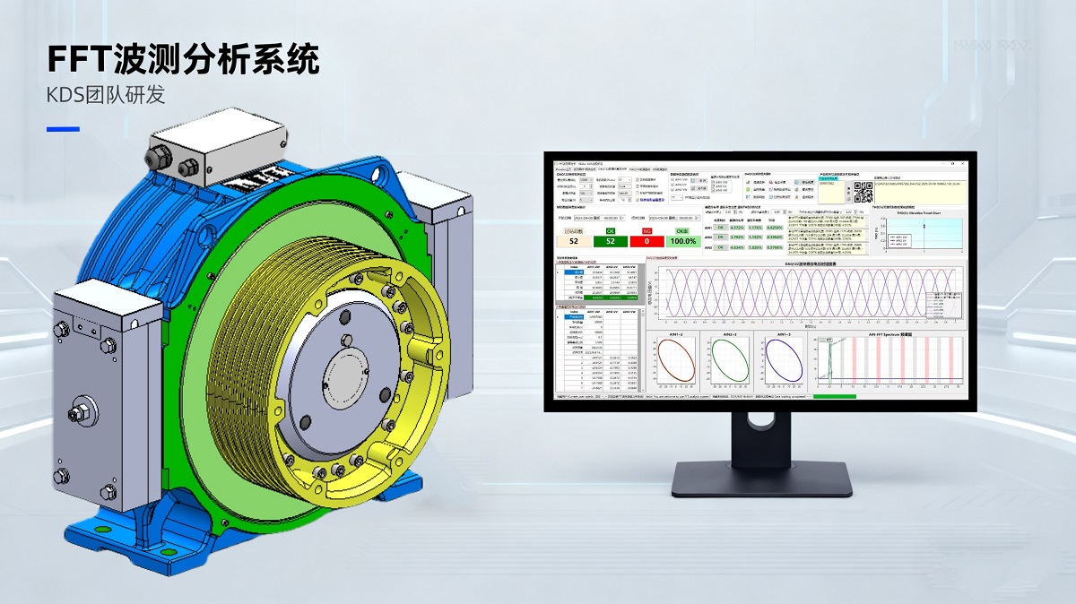 இழுவை இயந்திர செயல்திறன் சோதனை துறையில், வழக்கமான முறைகளில் முக்கியமாக அதிர்வு சோதனை, இரைச்சல் சோதனை போன்றவை அடங்கும். இருப்பினும், மின்னழுத்த அலைவடிவங்களை துல்லியமாக கைப்பற்றுவது மற்றும் செயல்பாட்டுத் தரவை பகுப்பாய்வு செய்வது மோட்டார் நிலையை மதிப்பிடுவதற்கான மையமாகும். விரிவான சுத்திகரிப்புக்குப் பிறகு, NIDEC எலிவேட்டர் மோட்டார் குழு சுயாதீனமாக இழுவை இயந்திரங்களின் பின் எலக்ட்ரோமோட்டிவ் ஃபோர்ஸ் கொள்கையின் அடிப்படையில் ஒரு FFT அலைவடிவ பகுப்பாய்வு அமைப்பை உருவாக்கியுள்ளது - சிக்கலான வெளிப்புற சென்சார்கள் தேவையில்லாமல், இது சிக்னல் மாற்றத்தின் மூலம் மட்டுமே சைன் அலைகளை உருவாக்க முடியும், இழுவை இயந்திர சோதனைக்கு மிகவும் திறமையான மற்றும் துல்லியமான தீர்வை வழங்குகிறது.