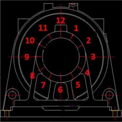 • அ) சிக்கல்: இரட்டை-ஆதரவு இயந்திர அடிப்படை அசெம்பிளியின் தாங்கி இருக்கையின் நுண்ணிய இயந்திர உள் துளையின் கோஆக்சியலிட்டி நிலையற்றது. அசெம்பிளிக்குப் பிறகு, முழு இயந்திரத் தளத்தின் தாங்கி அறையின் ரன்அவுட் சகிப்புத்தன்மையை மீறும், இது வரைதல் தேவைகளை பூர்த்தி செய்யாது.