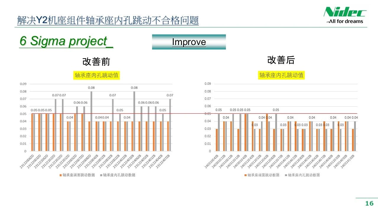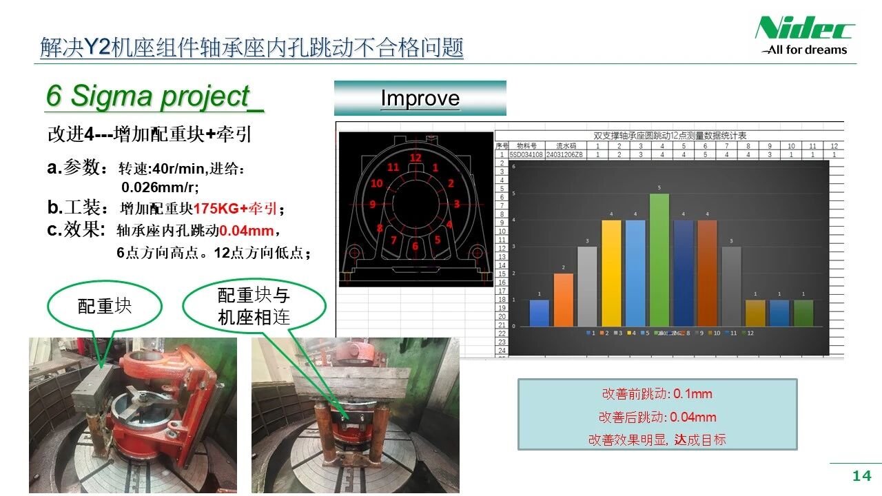 • b) முன்னேற்ற இலக்கு: குறைபாடு விகிதம் 200 PPM க்கும் குறைவாக உள்ளது, மற்றும் தாங்கி அறையின் ரன்அவுட் 0.05 மிமீக்கும் குறைவாக உள்ளது.