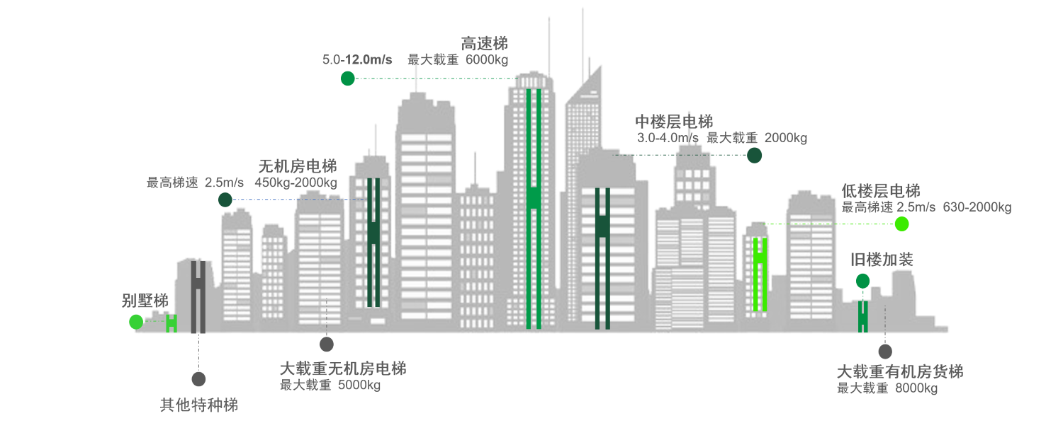 6000kg அதிகபட்ச சுமை திறன் (2:1 விகிதம்) மற்றும் அதிகபட்ச வேகம் 12m/s (1:1 விகிதம்) கொண்ட பயன்பாட்டுக் காட்சிகளுக்குப் பொருத்தமான, பரந்த அளவிலான இழுவை இயந்திரங்கள் மற்றும் பொருந்தும் மெயின்பிரேம்களை நாங்கள் வழங்குகிறோம். வாடிக்கையாளர்கள் நேரடியாக லிஃப்ட் அளவுருக்கள் அடிப்படையில் பொருத்தமான மாதிரிகளைத் தேர்ந்தெடுக்கலாம், இது வடிவமைப்பு சுழற்சியை கணிசமாகக் குறைக்கிறது.