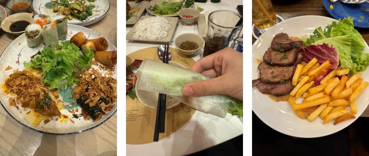 கண்காட்சிக்கு அப்பால், வியட்நாமின் அழகான இடங்களை ஆராயும் அதிர்ஷ்டம் எனக்கு கிடைத்தது, ஒவ்வொன்றும் தனித்துவமான வசீகரம் நிறைந்தவை. ஹோ சி மின் நகரம் வியட்நாமிய உணவு வகைகளுக்கு சொர்க்கமாக உள்ளது, அங்கு நான் ஃபுட் (மாட்டிறைச்சி நூடுல் சூப்), பான் மி (வியட்நாமிய பாகுட்) மற்றும் ஸ்பிரிங் ரோல்ஸ் உள்ளிட்ட உண்மையான வியட்நாமிய உணவுகளை சுவைத்தேன்.