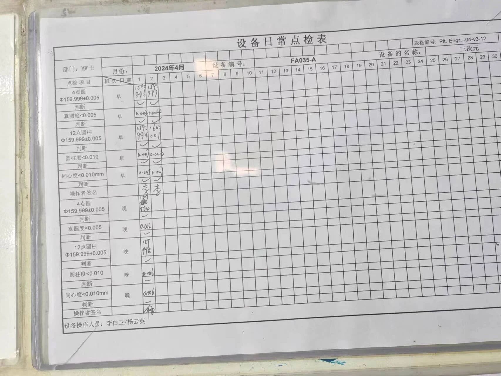 • உபகரணங்களின் நிலையை திறம்பட கண்காணிப்பதற்காக தினசரி உபகரணங்கள் சரிபார்ப்பு தாள்