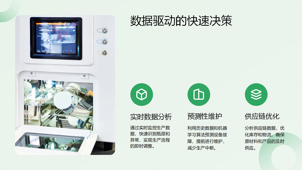 • தரவு உந்துதல் விரைவான முடிவெடுத்தல்: நிகழ்நேர தரவு பகுப்பாய்வு, முன்கணிப்பு பராமரிப்பு மற்றும் விநியோகச் சங்கிலி மேம்படுத்தல் மூலம் விரைவான பதில் முடிவுகளை எடுக்கவும்.